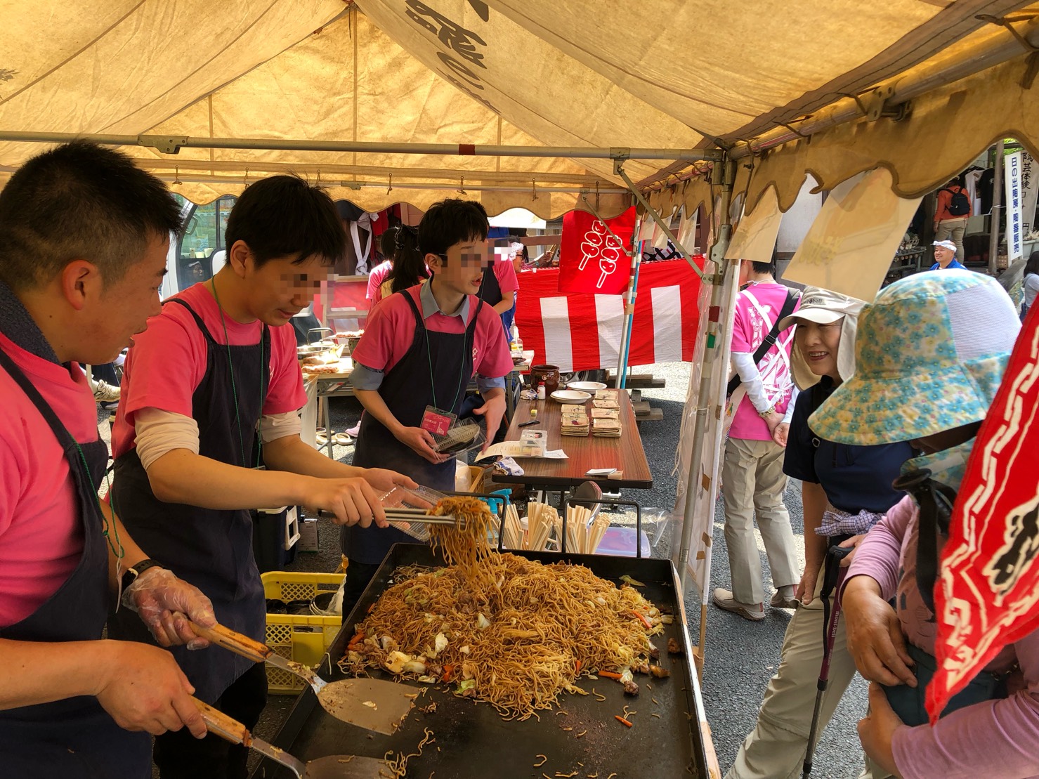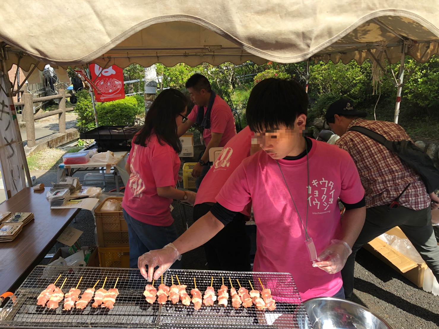 班分けは高校上級生のS君とボランティアのY君が焼き鳥班、中学生のS君と高1のY君が焼きそば班。