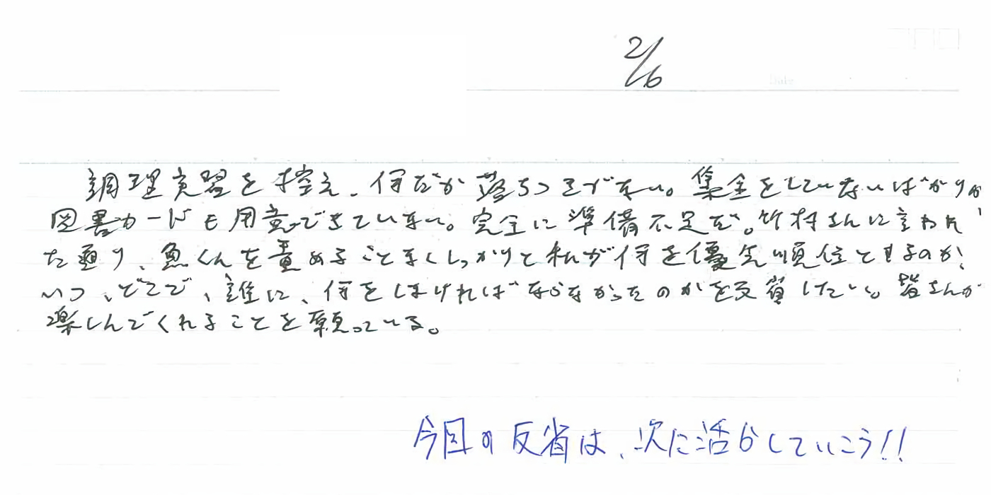 今回の反省は、次に活かしていこう!!