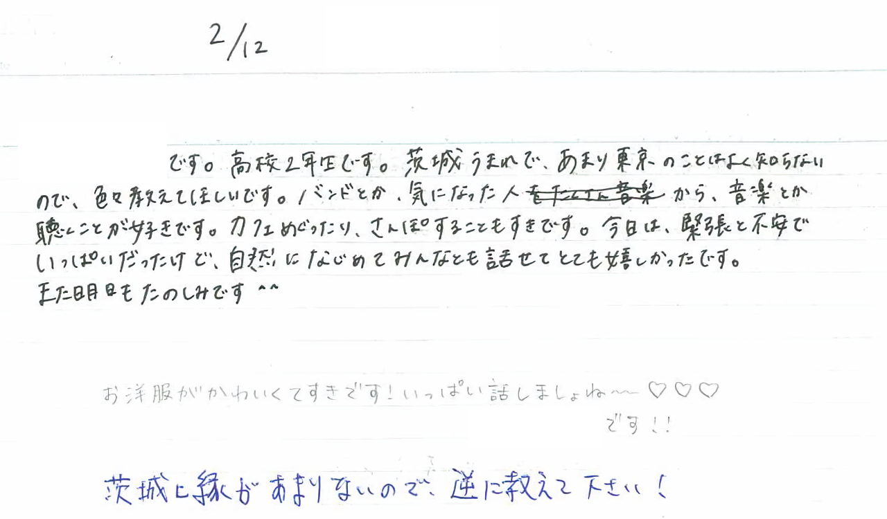 自然になじめてみんなとも話せてとても嬉しかったです。また明日もたのしみです^^