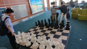 その後、中で最後のお土産を見て、超でかいチェスをして待っていました。