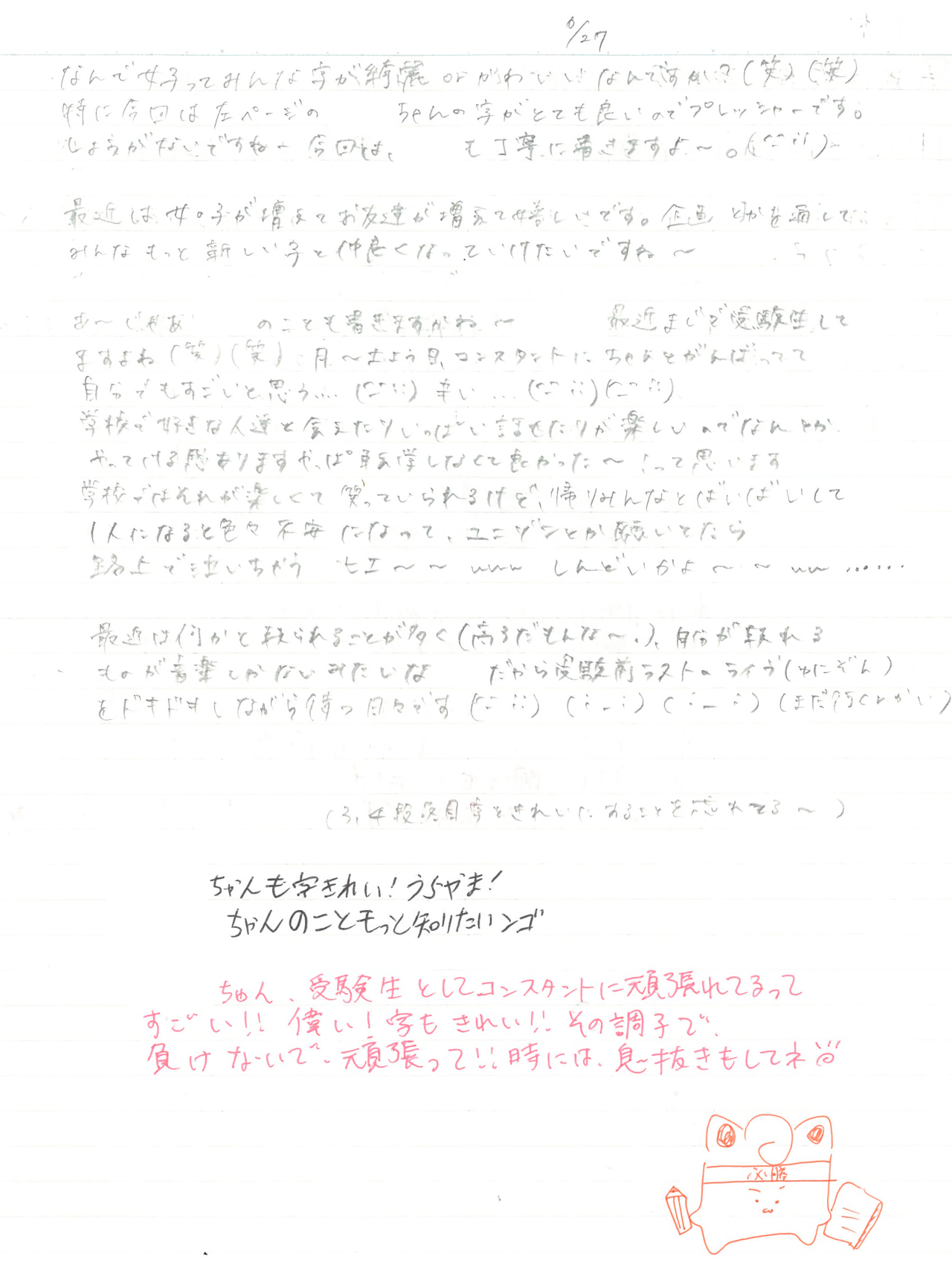 字もきれい!!その調子で負けないで!頑張って!!時には息抜きもしてネ