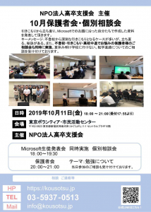 10/11日 保護者会を開催します。東京都でイベントを毎月開催している、通信制高校サポート校は当会だけです。
