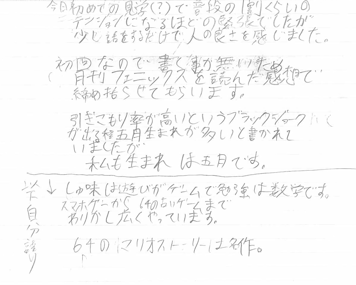 不登校塾・フリースクール 不登校中学・高校生の交換日記 @東京都新宿エルタワー・水道橋 その245