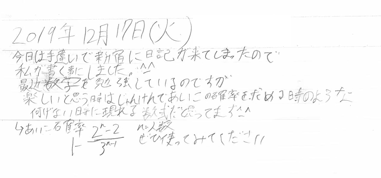 →あいこになる確率:1-{(2^n-2)/3^(n-1)} n=参加人数