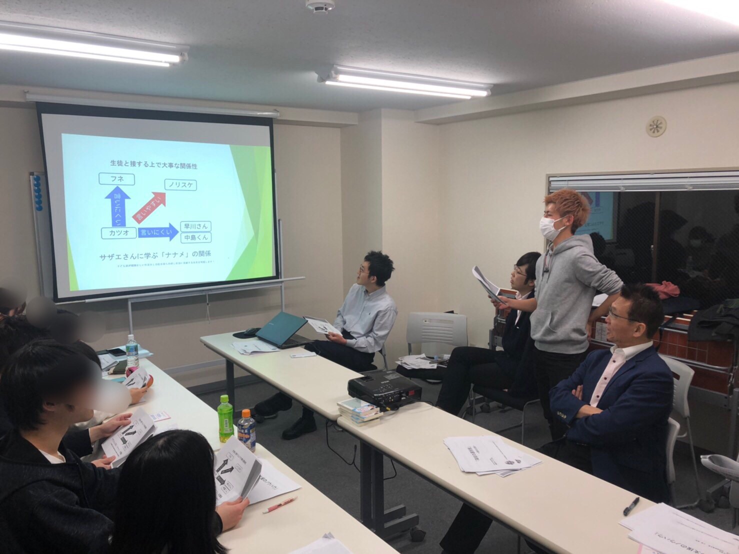 学生インターンの重要性の一つに「年が近くて相談しやすい間柄の人」ということを挙げていました。サザエさんの家族で例えておりますが、正しくはノリスケさんではなくマスオさんと訂正しました。訂正を受け、私はその場でパワーポイントを修正しようとしたのですが加藤くんに止められましたw