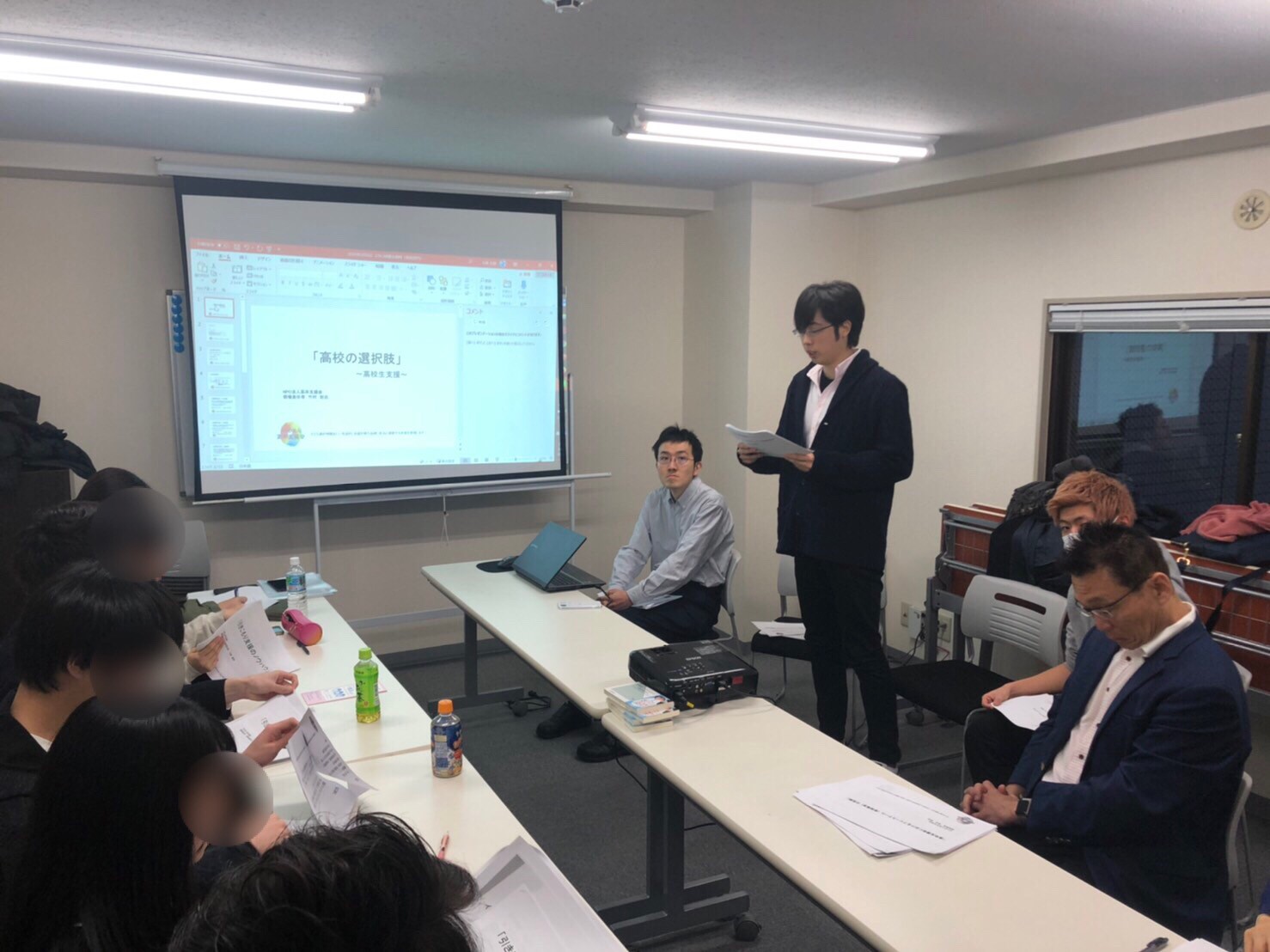 「高校の選択肢」というお題で話を進め、高校卒業資格の重要性、定時制高校や通信制高校の説明、そして通信制高校のサポート校としての高卒支援会の活動について話をしてくれました。
