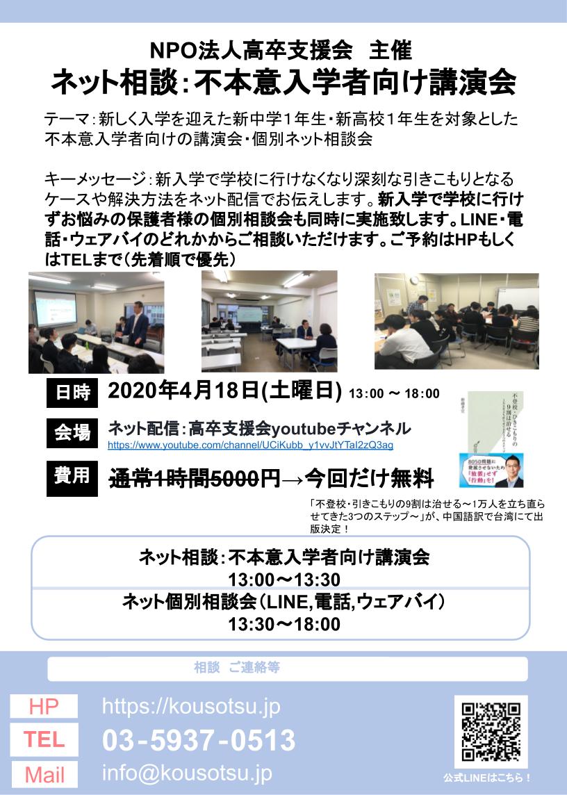 4月18日、不本意入学者向けの講演会・相談会を実施致します。