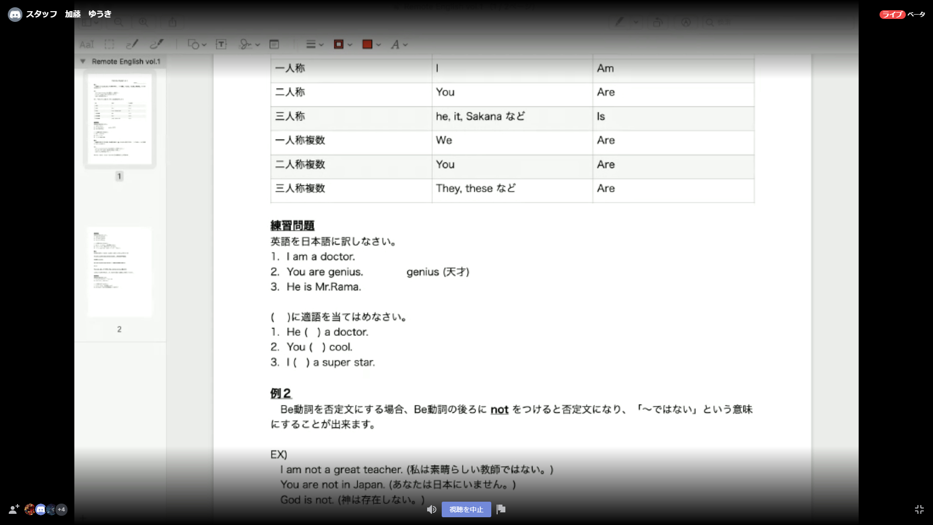 Discord上で画面共有が使えるので、リモート授業用の問題・解説プリントを作成しそれを見せながら解説という形になりました。