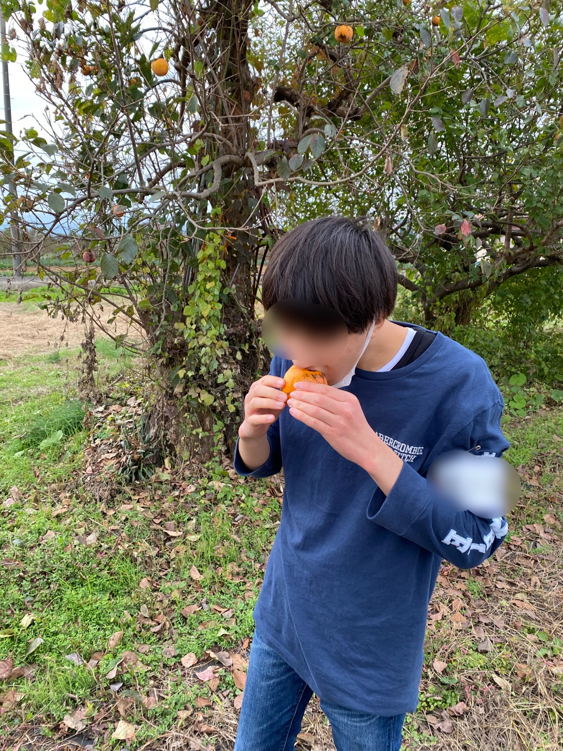 その後、柿狩りに行き、取れたての柿を生でガブリ、とても甘かったです!