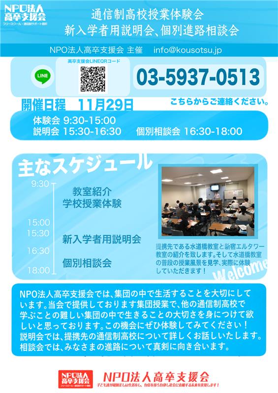11月29日(日曜日)2020年度最後の通信制高校説明会
