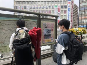 朝、高校1年生のM君と一緒に集合地点の新宿へ向かいました。入学したての当初はお迎えでようやく来れるかどうかだったのですが、少しずつ登校出来てきているみたいです。