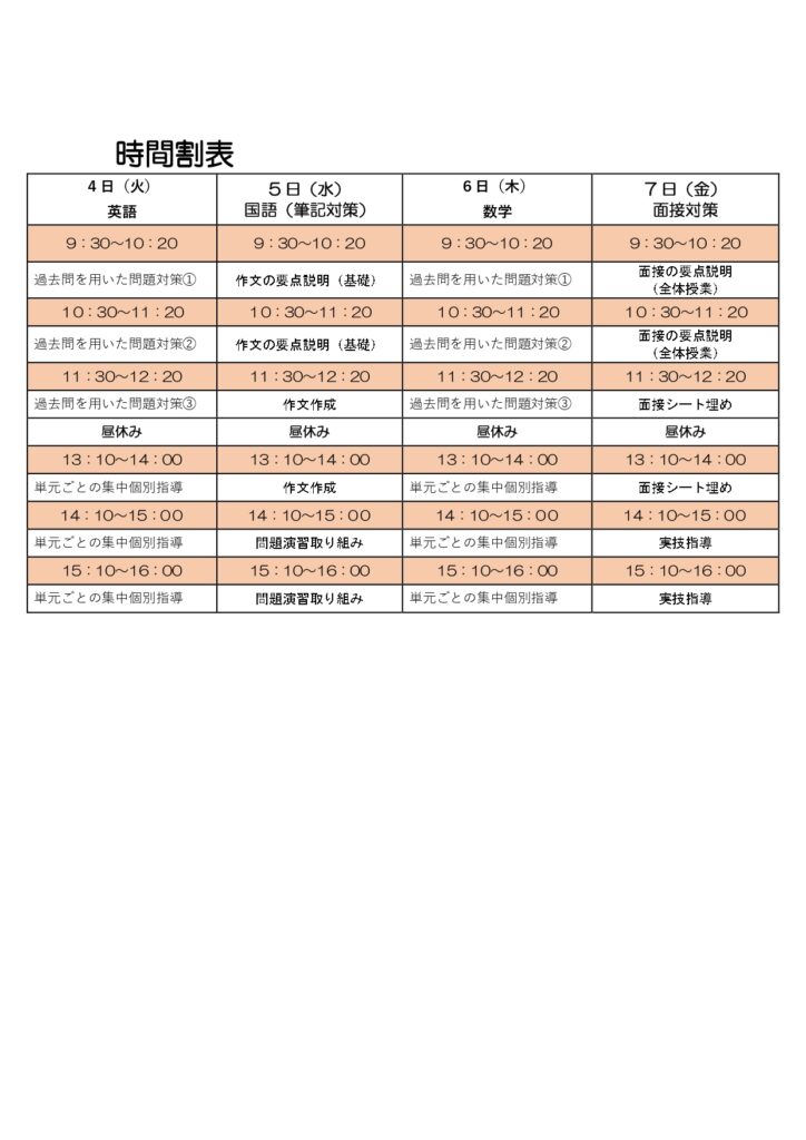 国語・数学・英語・面接対策を1日短期集中型で実施します。