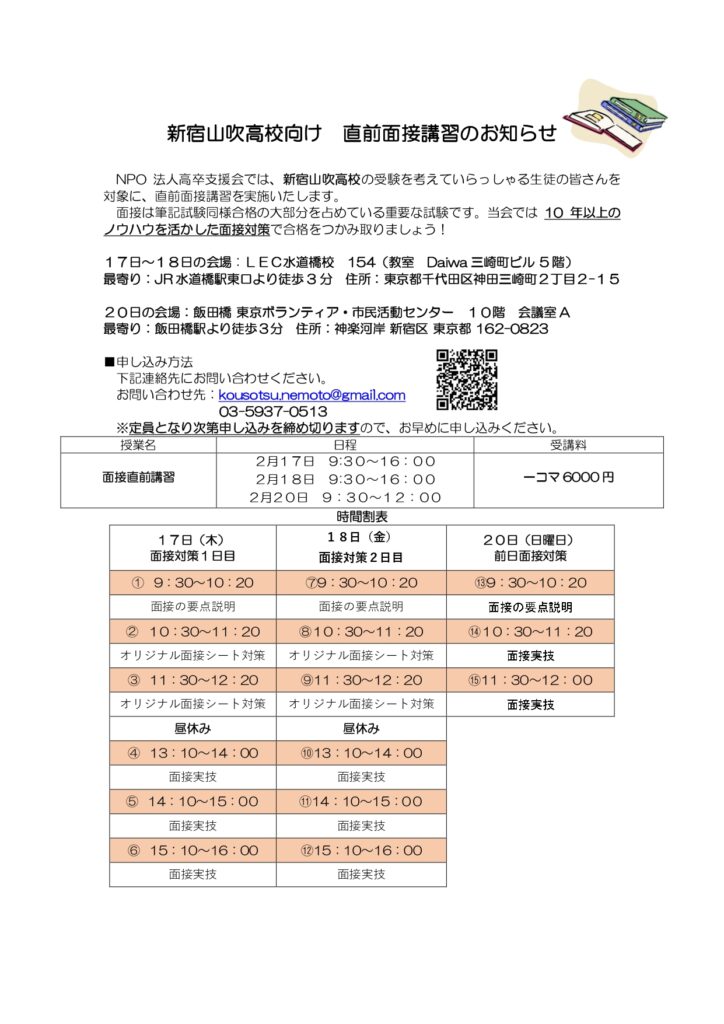 新宿山吹高校・チャレンジスクール 直前面接講習の対策実施!