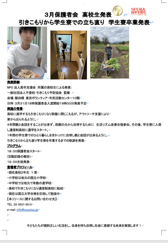 『不登校・ひきこもり急増 コロナショックの支援の現場から』ひきこもりから立ち直るまでの軌跡。ひきこもりから通信制高校サポート校での卒業をサポート!