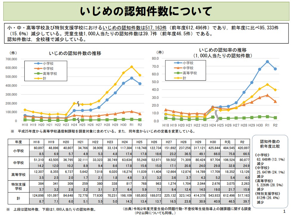 いじめの現状について令和3年11月22日(月)文部科学省より抜粋