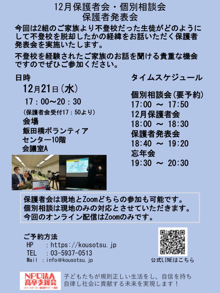 不登校・ひきこもりで上手くいっていないからこそ保護者会!
