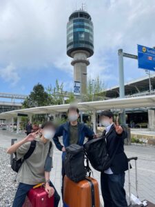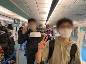 バンクーバー空港に到着し、かなり眠気を感じながらも、やっと飛行機から出れる開放感で、表情も明るいKくん、Iくん!