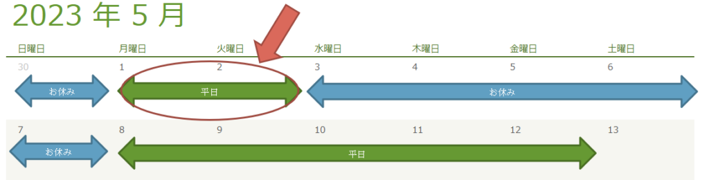 今年のGWは、1日2日が祝日と土日の間に挟まれて平日となっているので、この二日も学校があります。