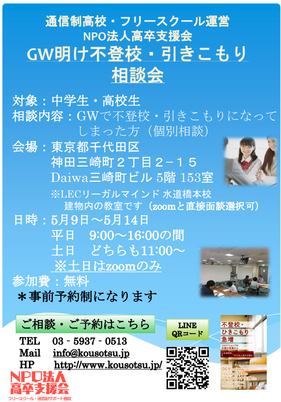 GW明け 不登校・引きこもり相談会