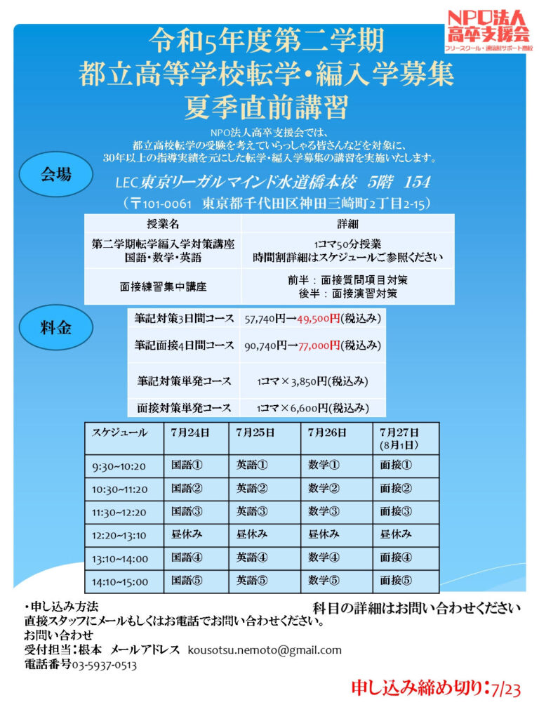 高卒支援会には転学のお問い合わせが例年以上に来ており、転学に関してお困りの方が多いということを実感しております。