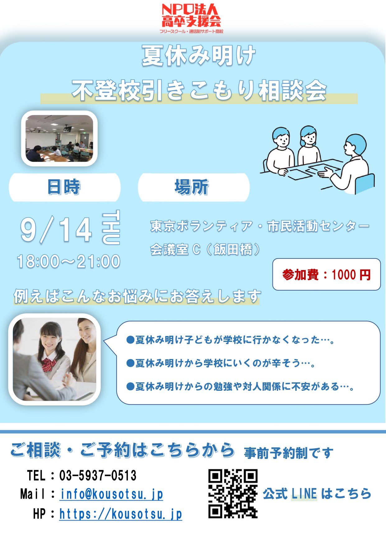 フリースクールすら通えるか不安…などでお悩みの方は、是非一度ご相談にお越しください!