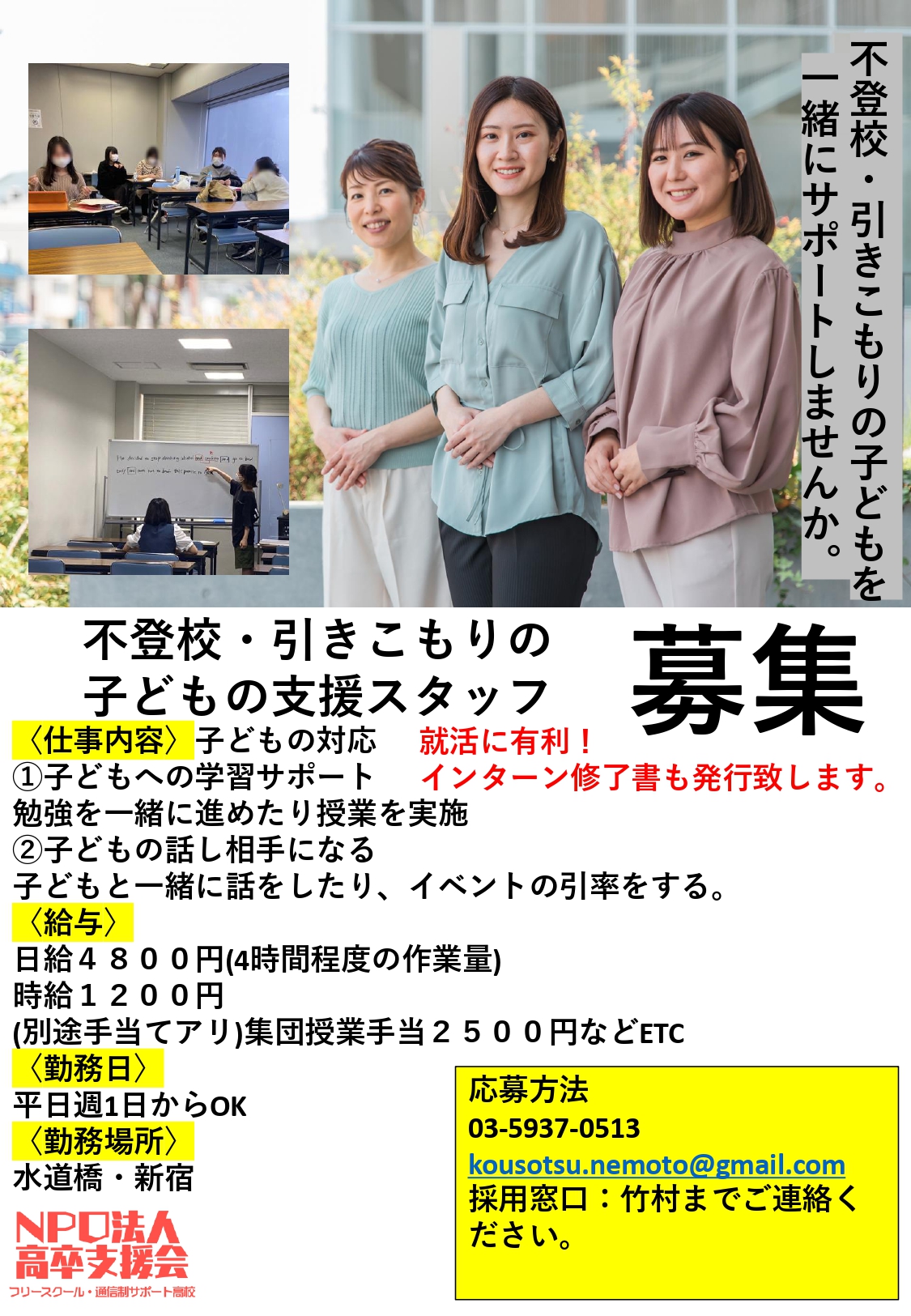 現在、高卒支援会では女子生徒の相談増加に伴い、女性インターンを特に募集しています!