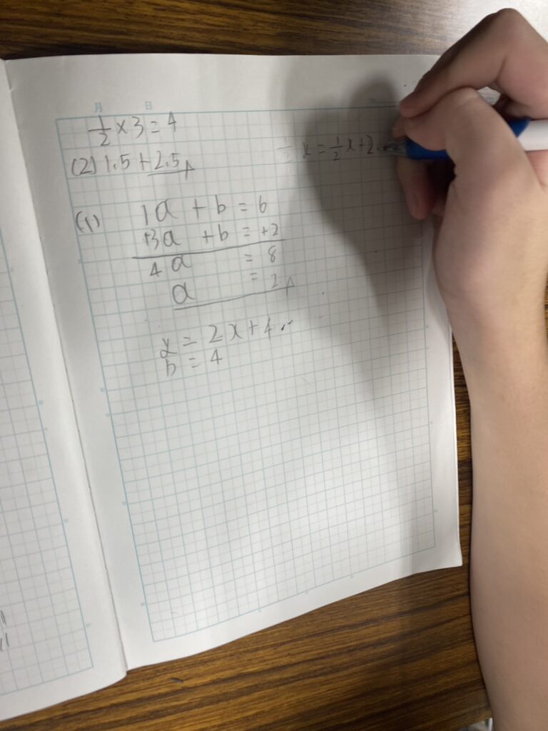 最初は(x,y)の意味も分からなかった中学一年生が、二年生でやるはずの一次関数チャレンジしてくれました。