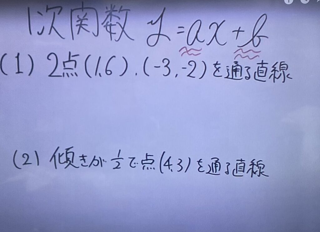 今回は、前回の学習から発展して、一次関数の授業を行いました。
