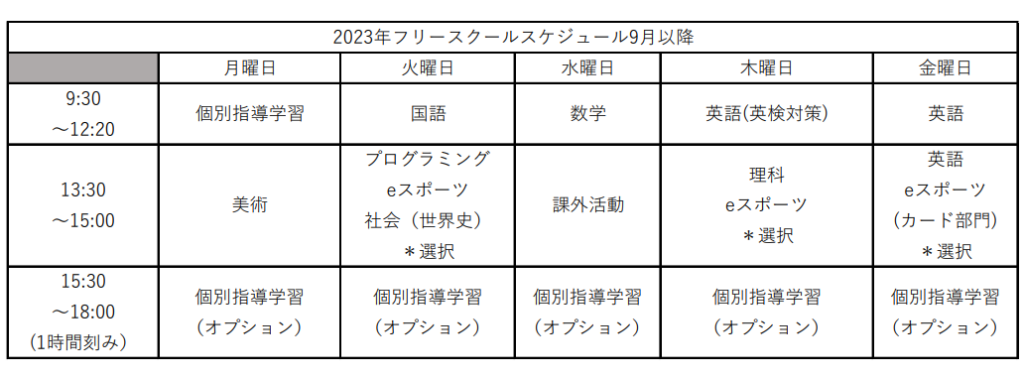 当会では、1週間単位で時間割を組み、フリースクールに通ってくれている生徒向けに授業を行っています。