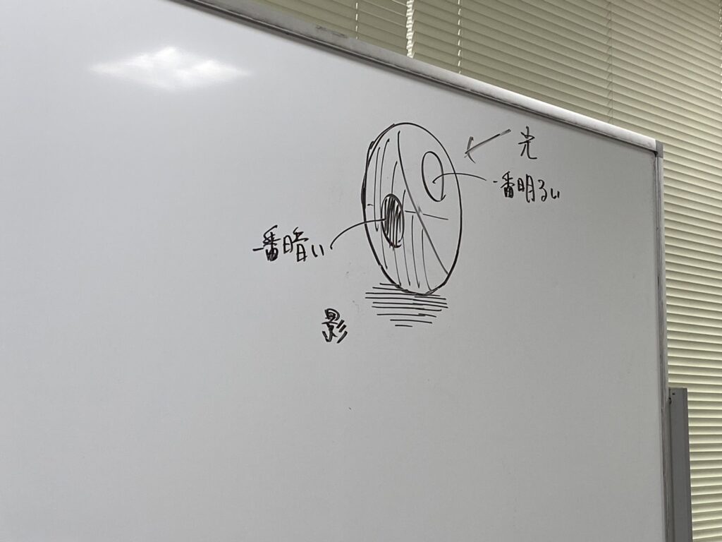 そして、円が書けたら次は影をつけて球体にしていきます。