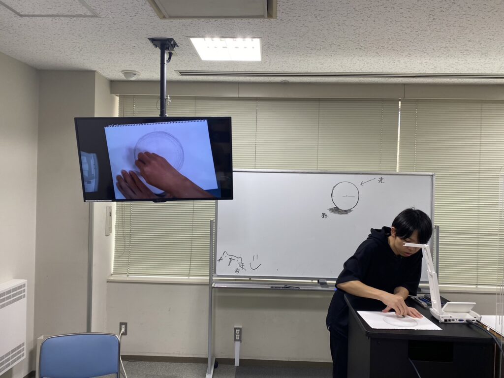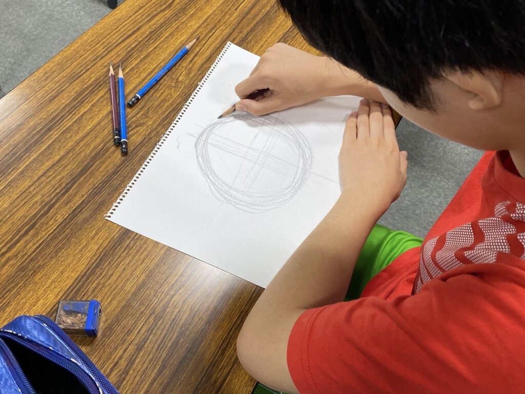 きれいな円は「書いて」作るのではなく、「消して」作るという書き方に驚きの生徒たち。