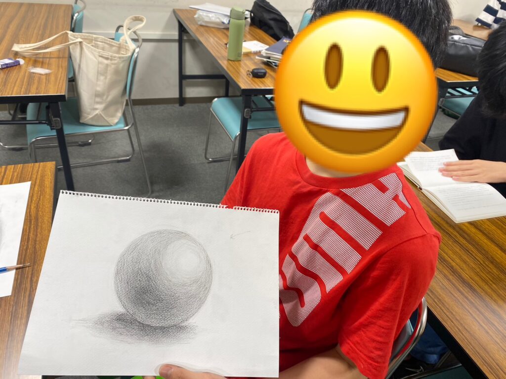 今回は前回学んだデッサンの基本から発展させ、球体のデッサンができることを目標に授業開始。