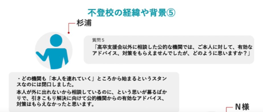 本来であれば外に出られないから相談しているのにも関わらず本人を連れてこないと対応が出来ない、カウンセリングが出来ないと言われます。