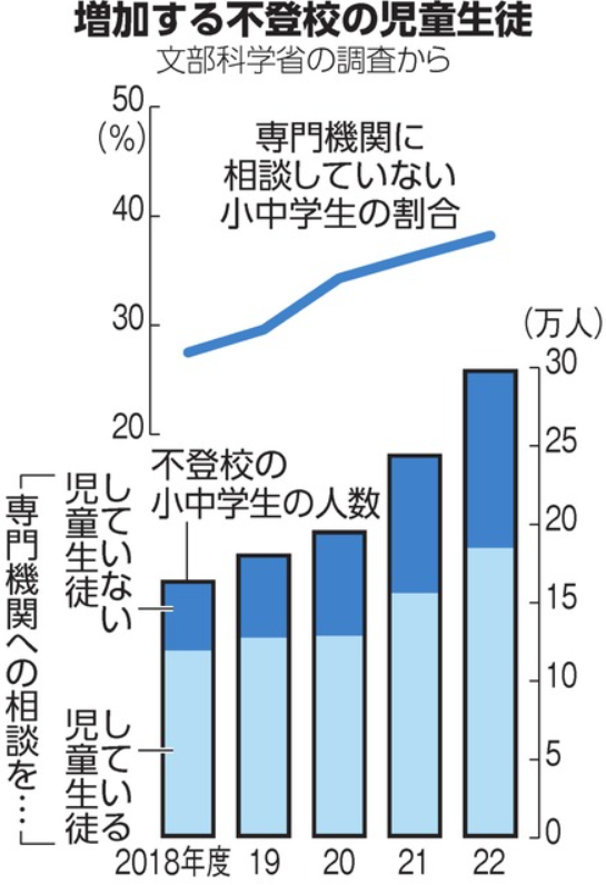 不登校の小中学生は過去最多の約29万9千人。前年度に比べて22・1%の大幅増となっています。