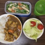 カレーライス、小松菜のツナマヨ和え、サラダ