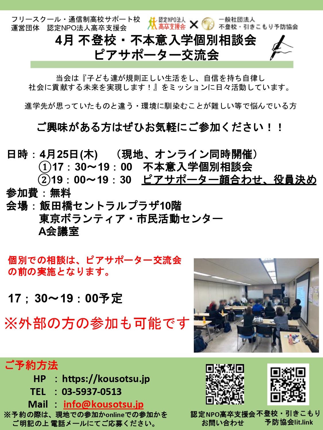 4月15日に個別相談会を実施いたしますので、是非ご参加いただければと思います。
