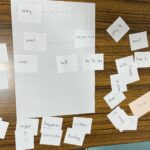 文の構成である【主語+動詞+目的語】を意識するだけでいろんな文章を作れます。それでは男女混合チームと男子チームの2つに分かれてSTART!