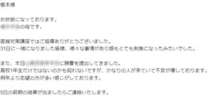 相談者のご希望により後期に向けて面接講習を予備で7日~8日に実施いたしますので、