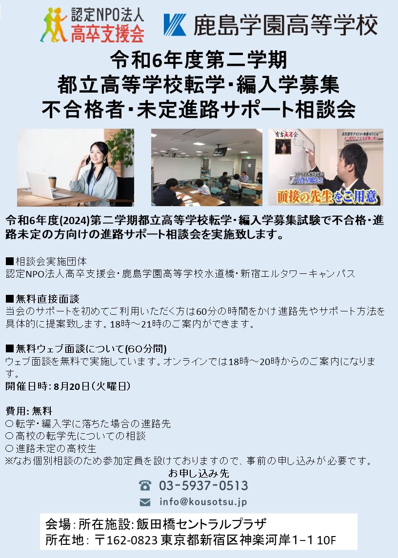 令和6年度第二学期都立高等学校転学・編入学募集 不合格者・未定進路ポート相談会