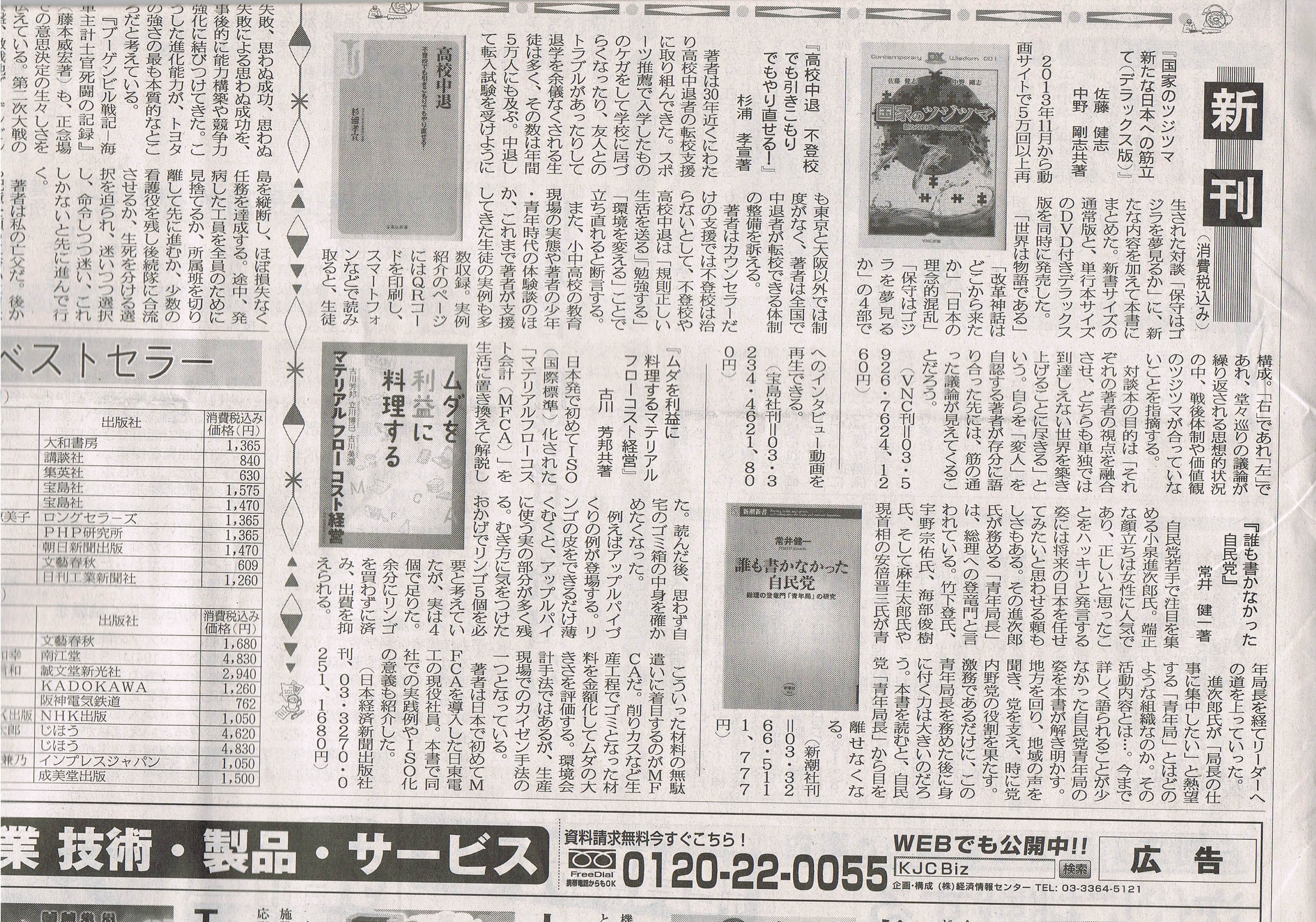『高校中退 不登校でも引きこもりでもやり直せる!』の読者の皆さん お早うございます.昨日は日刊工業新聞社さまが本の紹介をして頂きました。