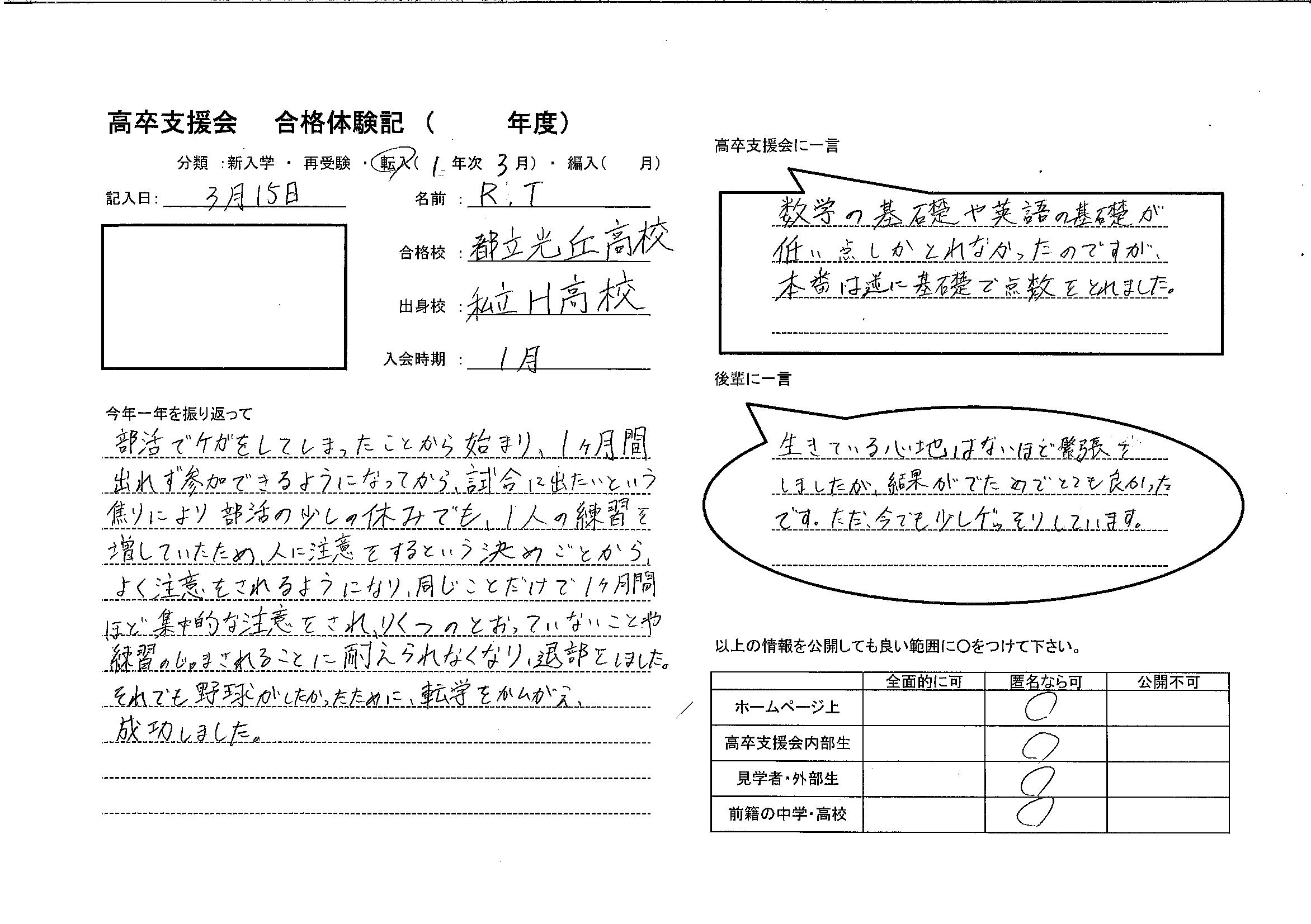 本日は私立高校に通いながら都立高校への転学を目指した生徒を紹介します。
