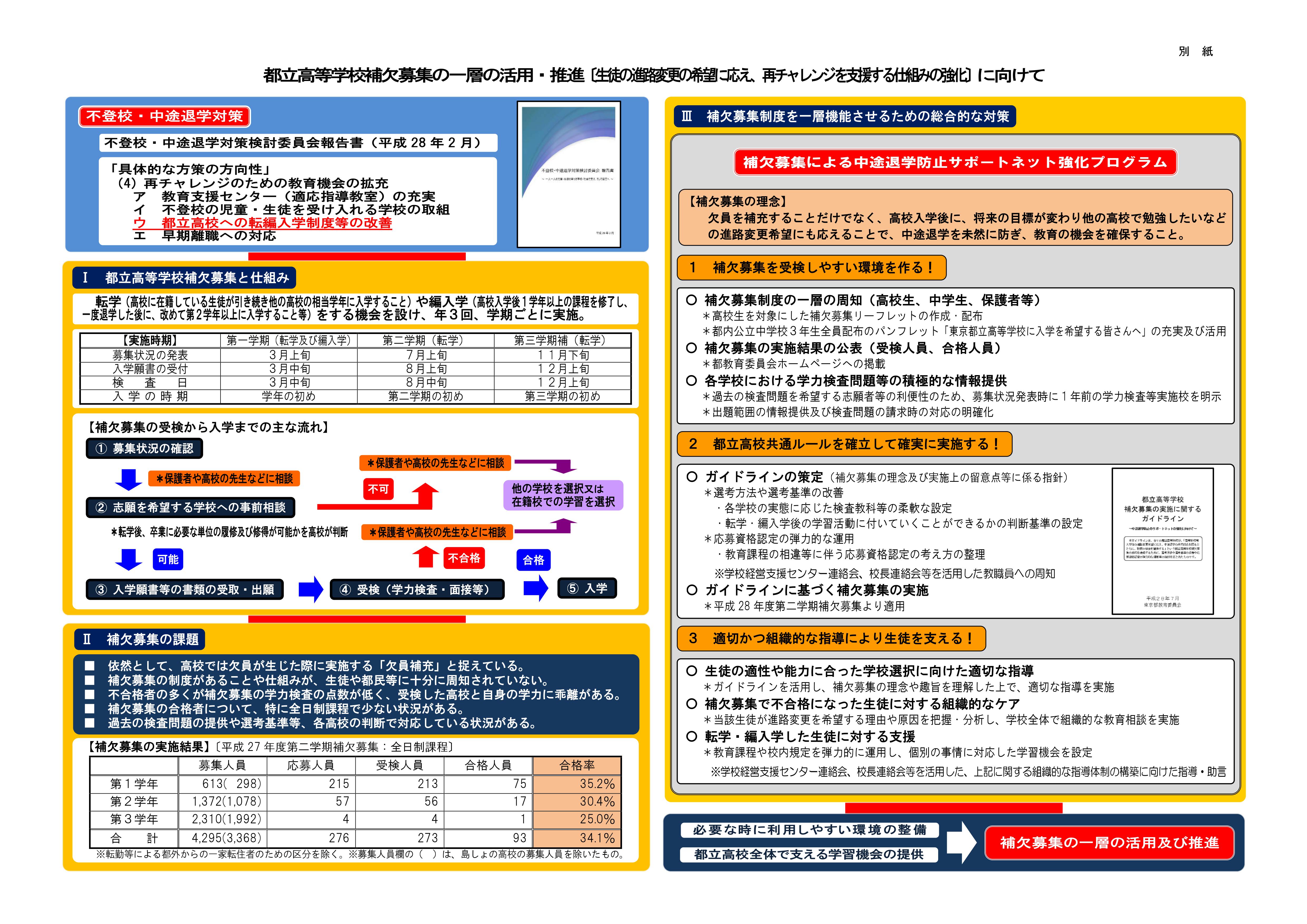 ・都立高等学校補欠募集の一層の活用・推進(生徒の進路変更の希望に応え、再チャレンジを支援する仕組みの強化)に向けて