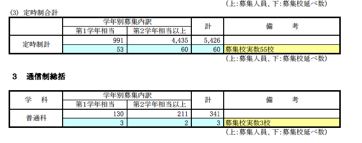 平成28年度第二学期都立高等学校補欠募集(転学・編入学)の定時制、通信制高校の募集状況を見てみましょう。都立定時制高校53校の募集は一年で991名、2学年以上で4435名です。都立通信制高校(一橋、砂川、新宿山吹)3校合計で一年で130名、2学年以上で211名です。
