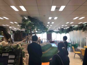 エントランスは上記の様にここは会社か? 動物園? 遊園地か? という雰囲気。他、バーカウンター、託児室などがありました。