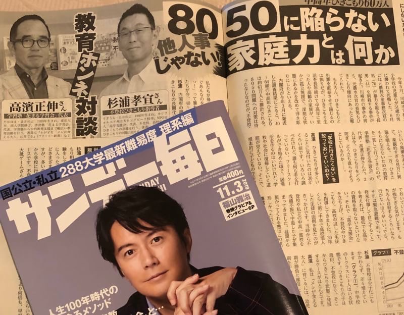 不登校中学生・高校中退・引きこもりでお悩みの方 サンデー毎日の今週 11/3日号見て頂きましたか?