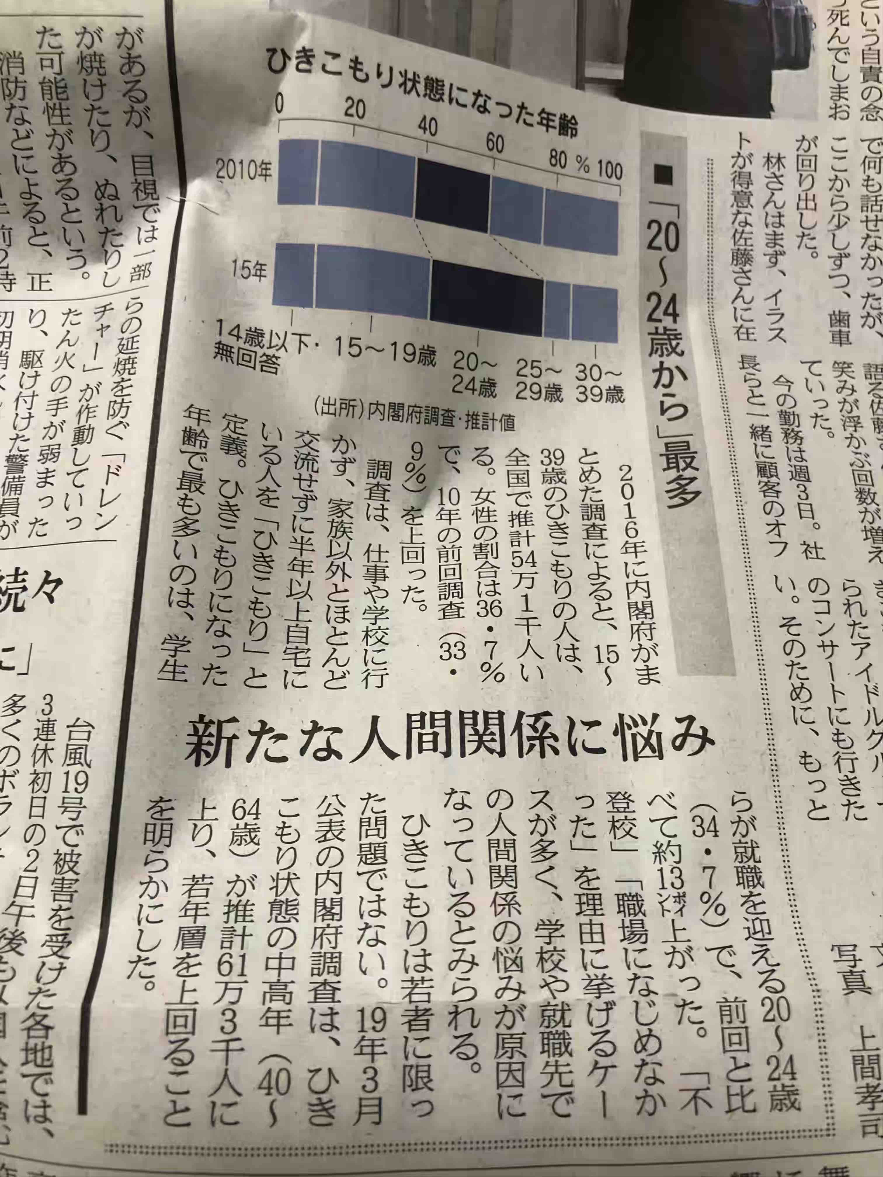 「そう言われても、簡単にわかるくらいなら、総理大臣になっていますよ。それよりも、このグラフを見て下さい。日経は20〜24歳が引きこもり状態になった最多年齢としていますが、私は19歳未満、無回答14歳以下を注目しています。なぜなら、この年代の子であれば、拙著で書かせて頂いたように9割は立ち直っていますから」