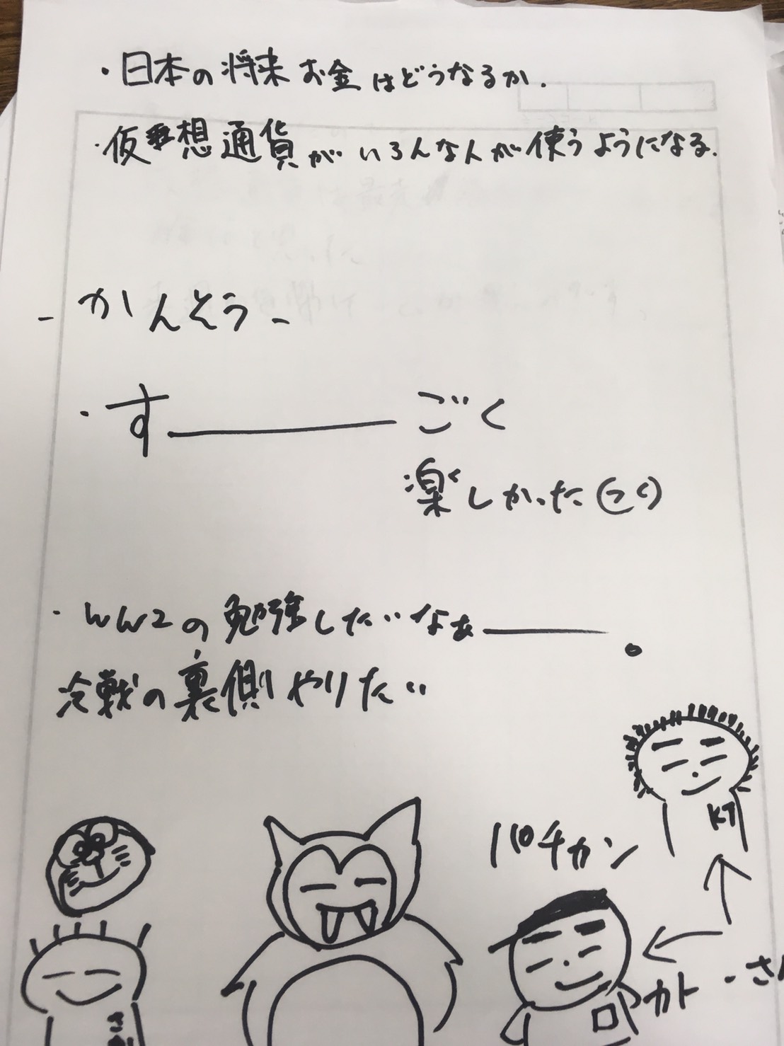 第2回の貨幣ゲームは色々な国の経済状況を考慮し、条件を変え、貨幣を生産するゲームなのですが、班ごとのチーム分けを行いました。これが思いの外受けたので、今も3回目の授業に関してグループワークを行なっています。