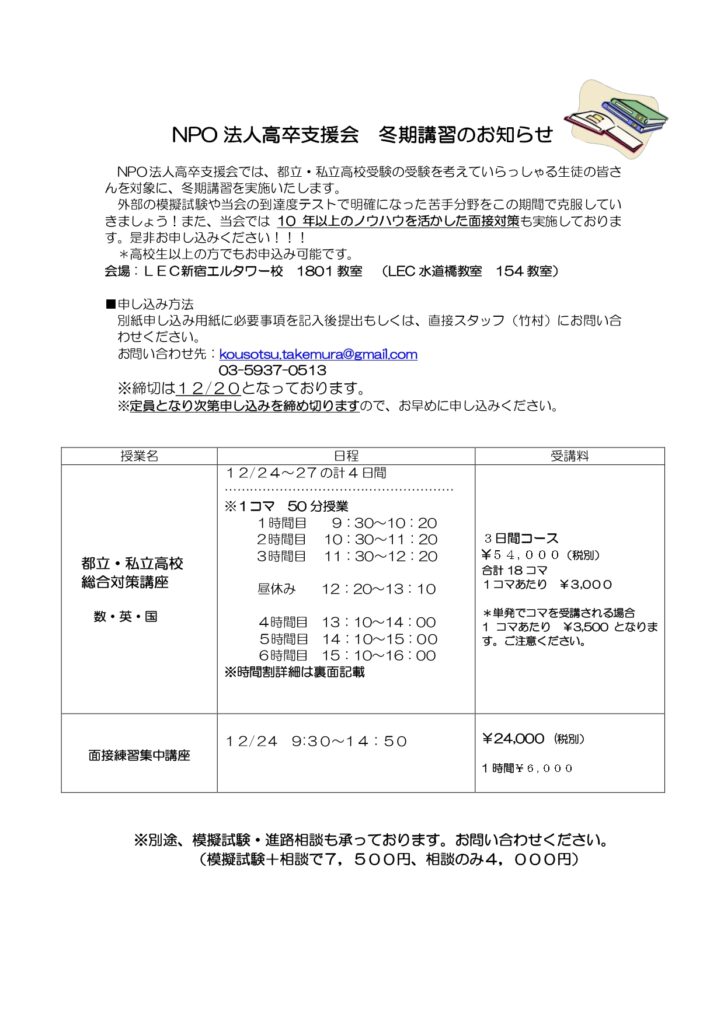 冬期講習の案内