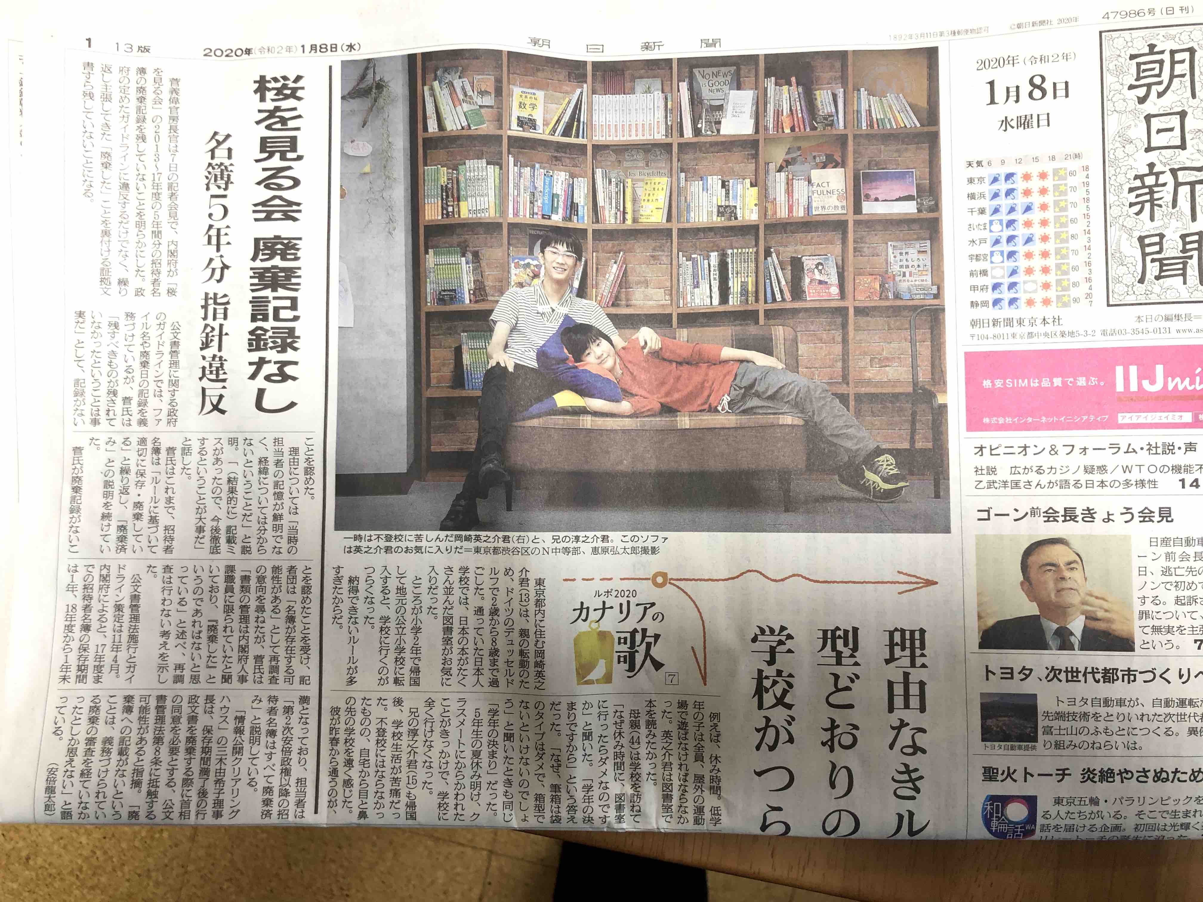 上記は昨日の朝日新聞、1面です。驚くべきは 不登校の本人がモザイクなしで堂々と掲載されていることです。