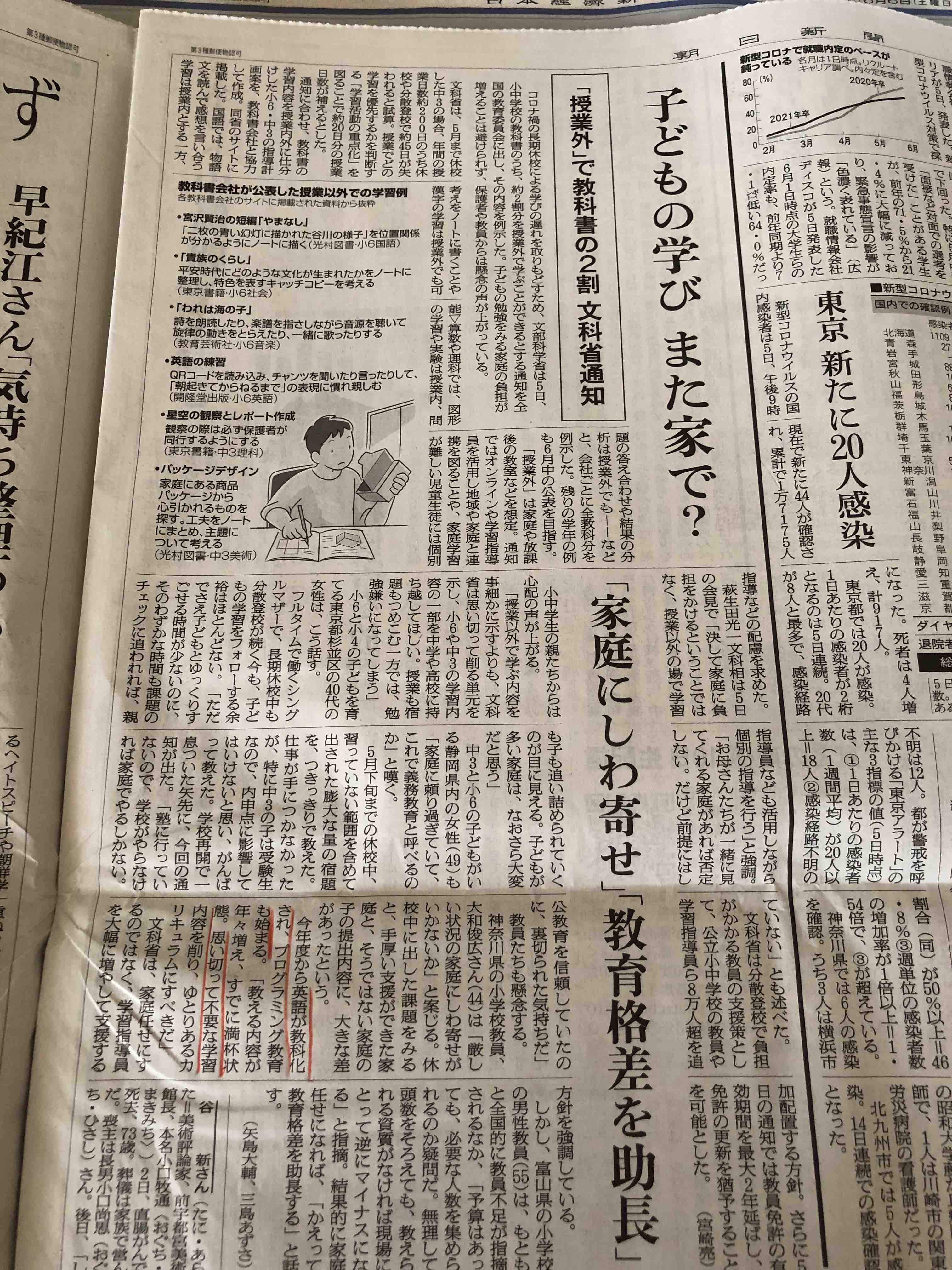 上記、抜粋記事に書いてあるように、最近の教科書はてんこ盛りになりすぎて、おそらく消化不良になるでしょう。また、コロナの影響で「自宅で勉強しろ」ですから、絵に描いた餅になるでしょう。